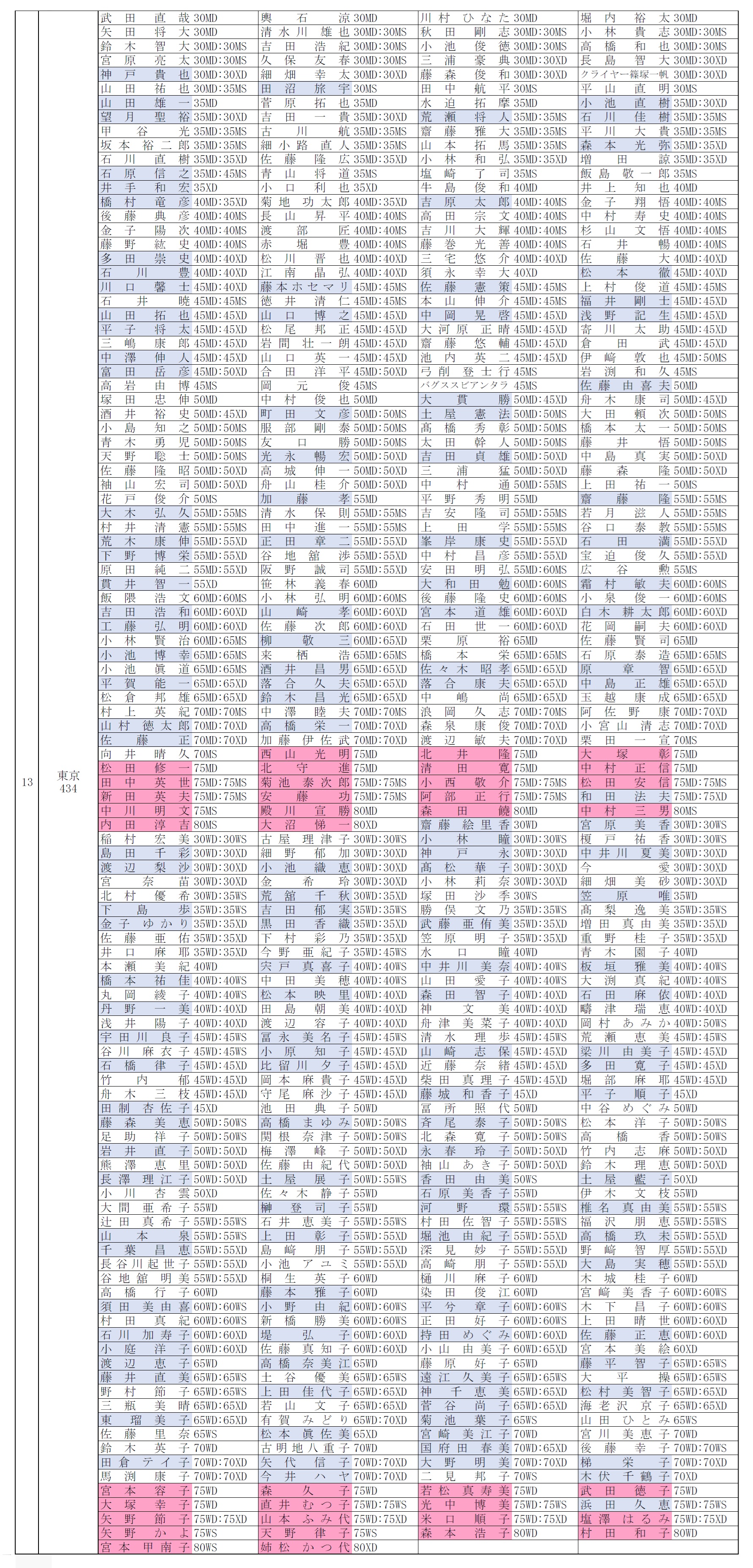 2.全日本シニア選手権大会の東京都推薦者リスト